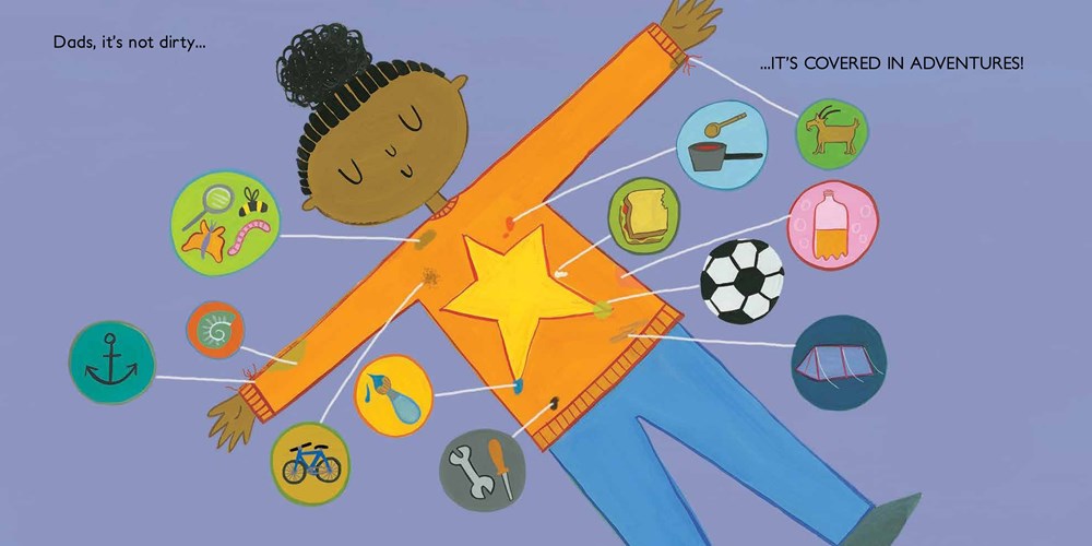 Sasha won’t even let her dads wash the sweater because the memories might be washed away. She pleads her case to her dads by recalling each adventure based on the rips and stains they created. But eventually, she realizes that the sweater didn’t make the memories, and a new sweater just means more room for more memories.